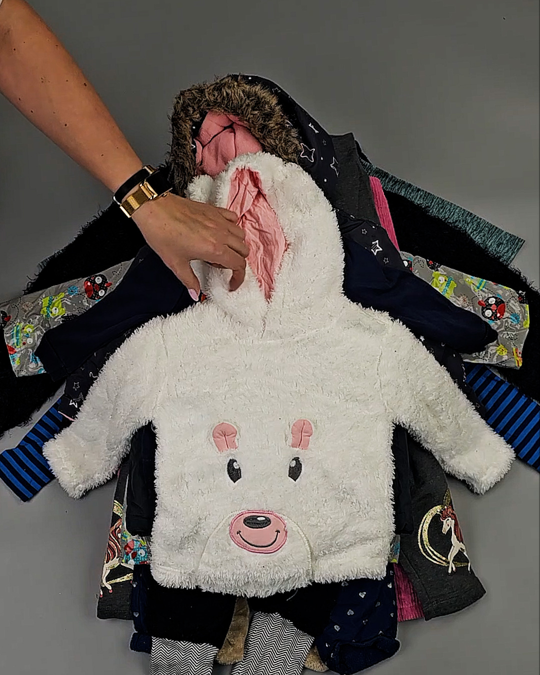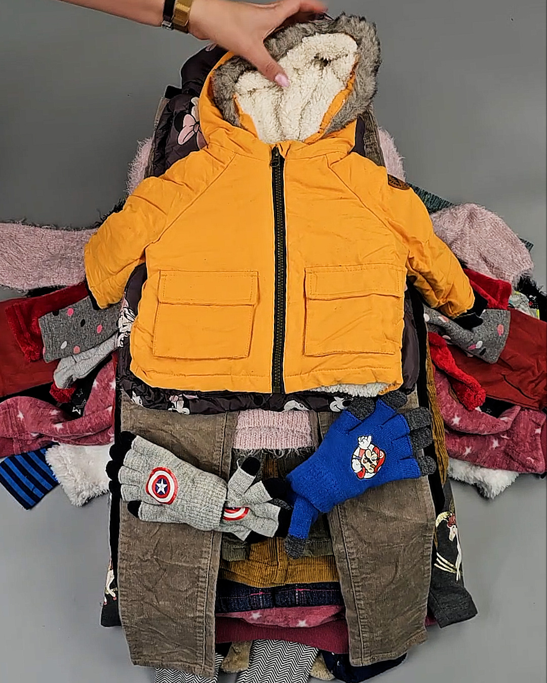 В мешке представлен детский ассортимент - это продукция актуальных европейских брендов высокого качества. Отлично подойдет для закупки если целевым сезоном продаж является зима.