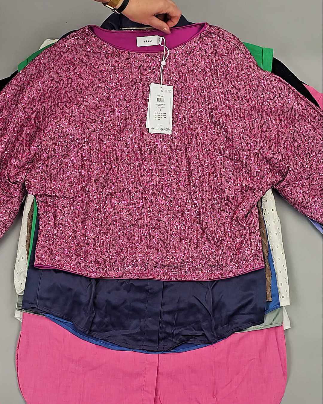 Среди нашего ассортимента всегда в наличии Сток в количестве более 450 тонн. Каждую неделю новые привозы из Европы, в том числе источником оптовых поставок бренда VILA является ДАНИЯ.