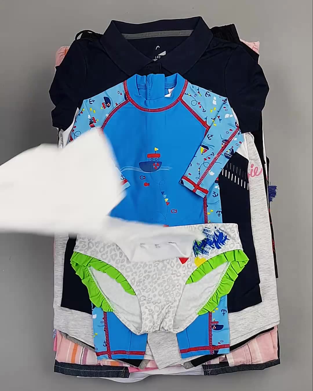 В мешке представлен детский ассортимент - это продукция актуальных европейских брендов высокого качества. Отлично подойдет для закупки если целевым сезоном продаж является лето.